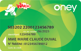 (1) L’utilisation de votre carte est possible sous réserve du bon fonctionnement de votre compte et dans la limite du solde disponible. La carte Visa Auchan est attribuée sous réserve d’acceptation par Oney Bank. Vous bénéficiez d’un délai de rétractation de 14 jours à compter de la date de souscritpion de votre carte. Le crédit renouvelable auquel les cartes Visa Auchan sont associées est assorti d’un TAEG révisable (et taux débiteur révisable ) jusqu’à 3 000,00 € de solde dû : 23,24% (20,90%), de 3 000,01 € à 6 000,00 € : 15,67% (14,56%) au-delà : 8,63% (8,27%).